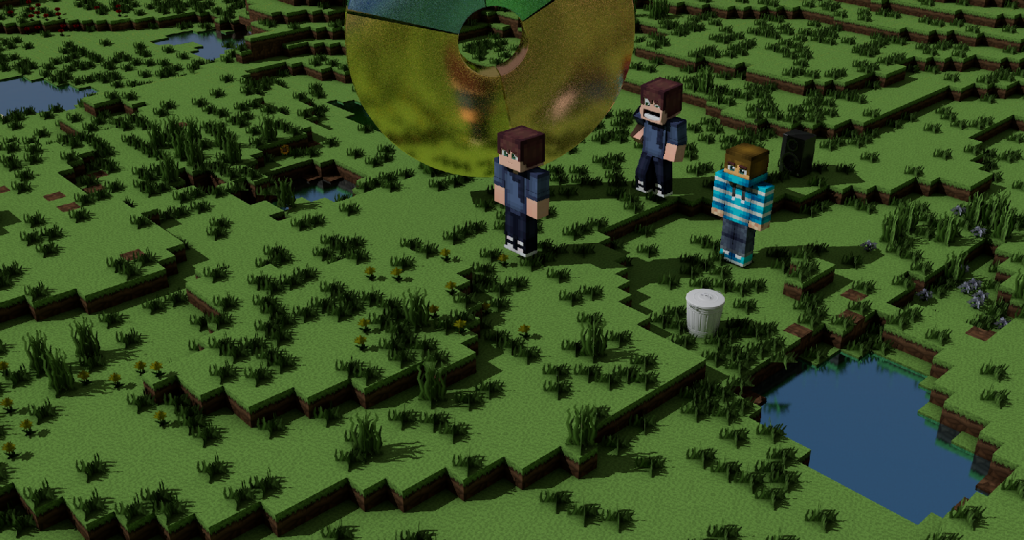 Hallo zusammen. Hier ist mein erster Versuch eine Minecraft Welt zu Animieren und Rendern. Steve und zwei Kumpels machen in der dieser Welt Quatsch.